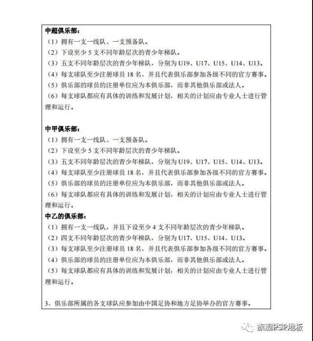 12月21日訊 北京時間今日,中國足協(xié)發(fā)布了關于印發(fā)《中國足球協(xié)會職業(yè)俱樂部準入規(guī)程》的通知,規(guī)定中超、中甲球隊須有5支梯隊,中乙球隊4支梯隊。